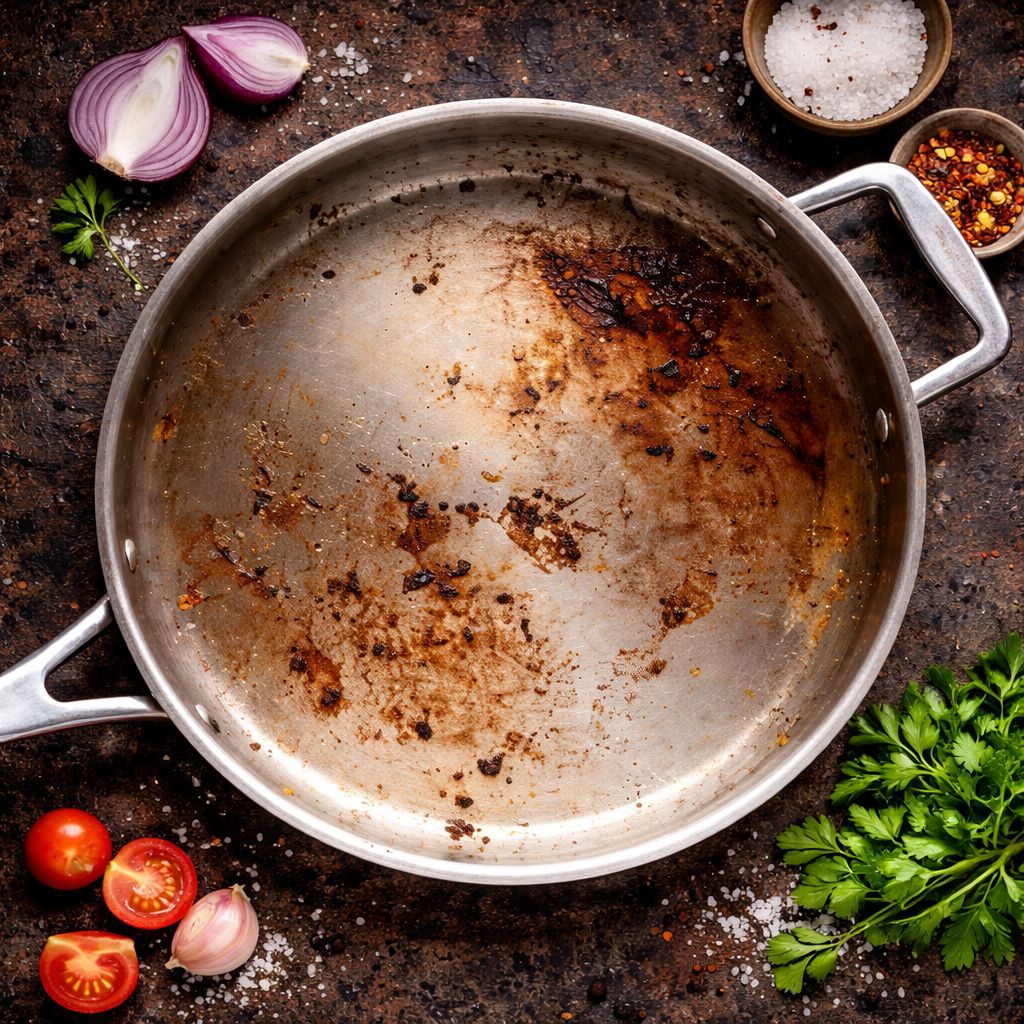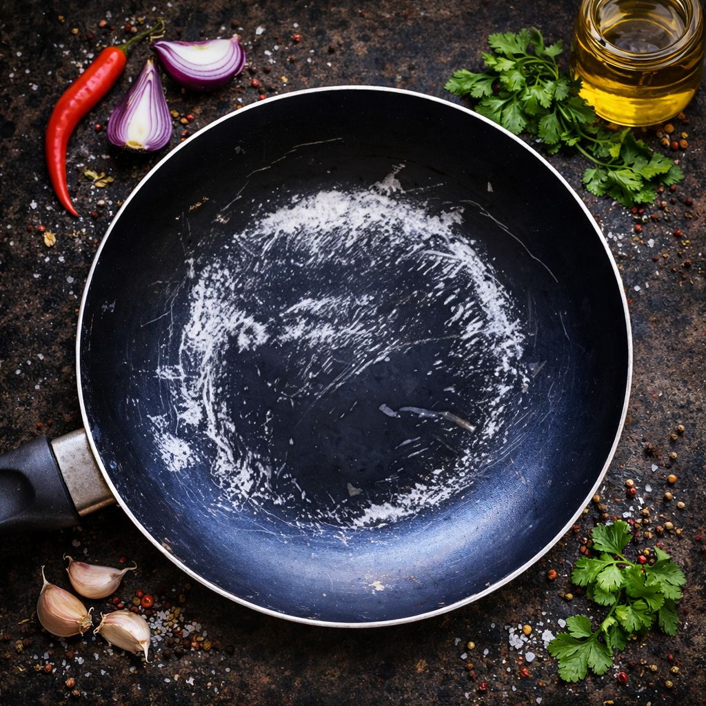 מה שרואים בתמונה זה ציפוי נון־סטיק שחוק, שרוט ומתקלף. בניגוד לברזל יצוק או Carbon Steel – כאן זה כבר לא עניין של תחזוקה, אלא בעיה בריאותית ממשית.