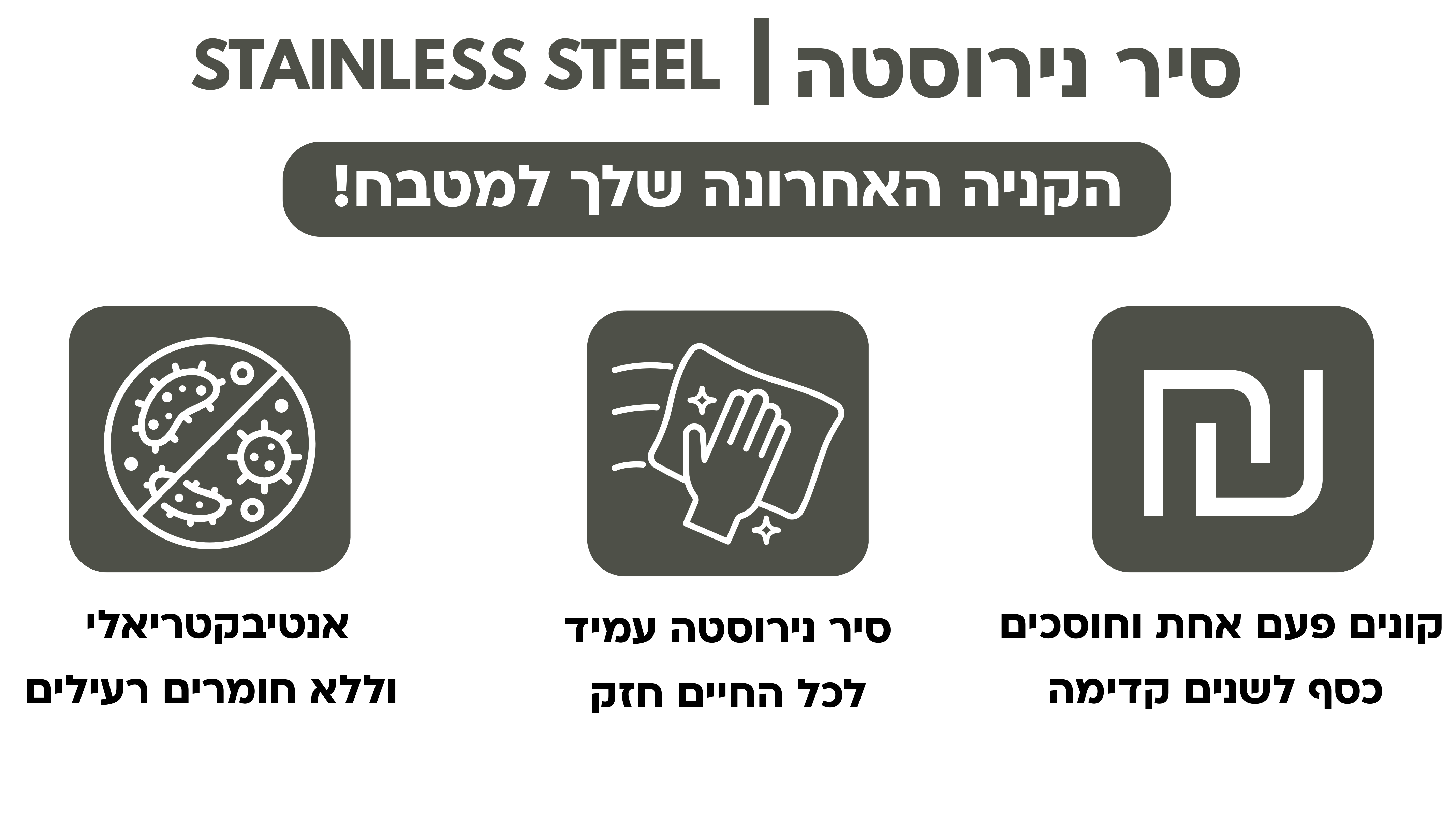 הטיטניום עמיד, לא סופג ריחות או כתמים, וכך מאפשר בישול בטוח, היגייני ובריא לאורך זמן.